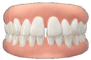 A teeth alignment issue where there are spaces between the teeth. Invisible braces can effectively be used for closing the gaps.