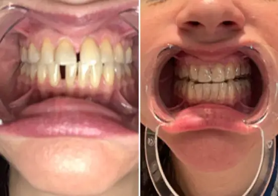 A teeth alignment issue where there are spaces between the teeth. clear aligner can effectively be used for closing the gaps.